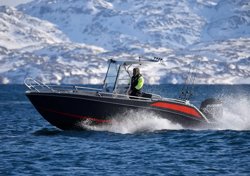 Ein robustes, extra breites Aluminiumboot mit Platz für bis zu 8 Personen – ideal für entspannte Touren oder Angelausflüge auf dem Fjord